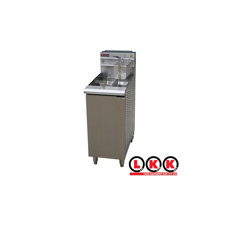 • Stainless steel front rail, door, splash back and fry pot